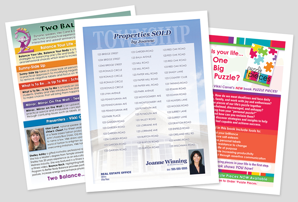 Among my diverse client list is RE/MAX Services, where, for over five years, I created graphic marketing materials for their real estate agents.